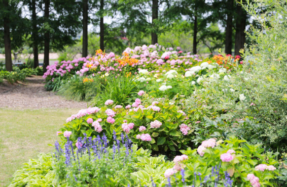 漫步植物园小径,各色绣球一路恣意盛放,红的像火、黄的似金、白的若雪、绿的如玉、粉的似一片云霞,更有那蓝中带紫的,显得格外清幽淡雅。