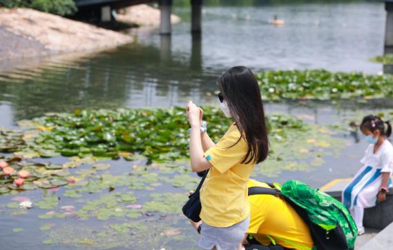 除了“花神”绣球外,园内的睡莲也吸引了许多游客驻足观赏。睡莲固有花中“睡美人”之称,“一花一叶一池娇”,一朵朵睡莲微微探出水面,在绿叶上竞相绽放,少女粉的温柔、雪白色的清丽,在一池碧水中摇曳,曼妙多姿,惹人心醉。