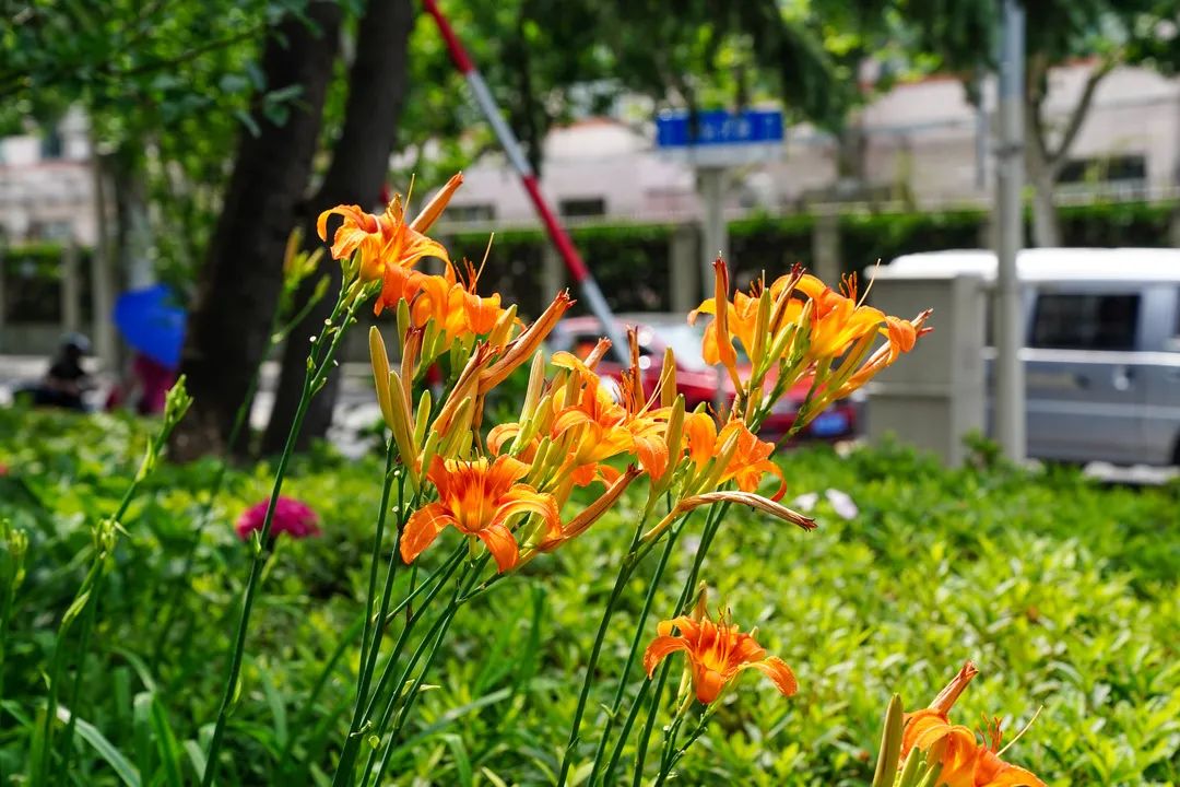 晚春早夏,多雨高温,萱草在树荫下生长,明艳的橙黄宣告着夏天的到来。