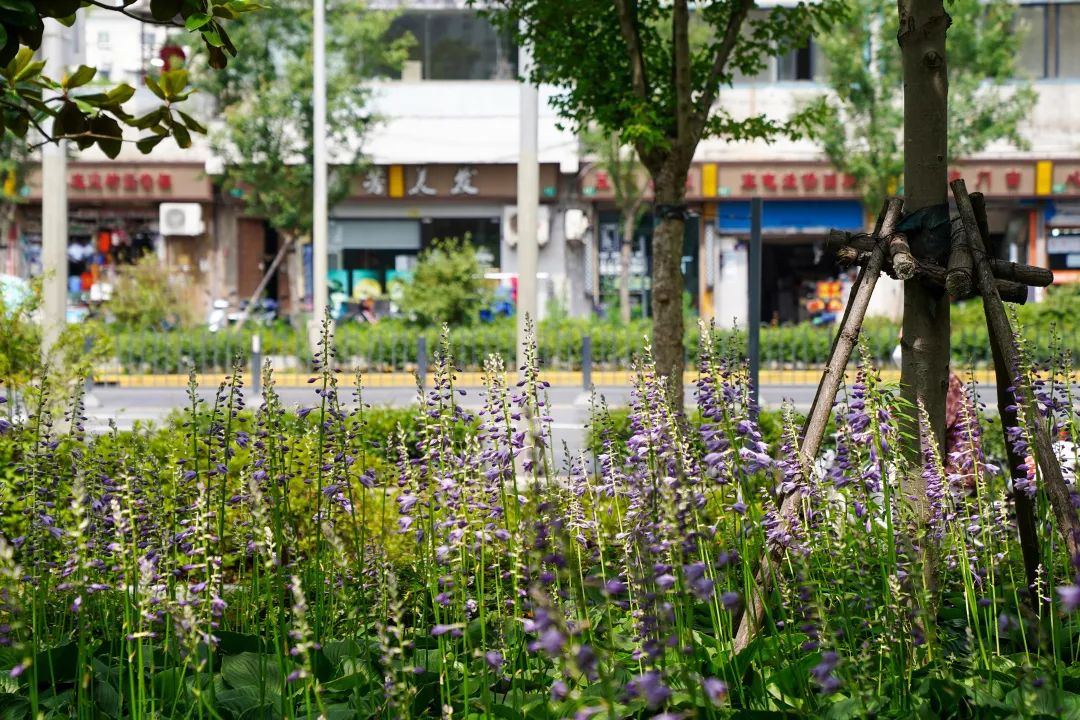 在广粤路绿道,鼠尾草花开正艳,一簇簇紫色花朵绵延铺展,似一幅印象派油画。