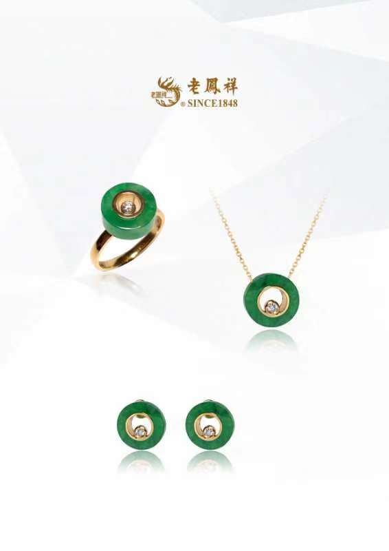 老凤祥紧扣传统题材和时尚元素,打造了翡翠“平安扣”系列,平安扣也称怀古,是中国的一款传统玉饰品,从外型看它圆滑变通,符合中国传统文化中的“中庸之道”,平安两字寓意明确,表达了人们朴素美好的愿望。