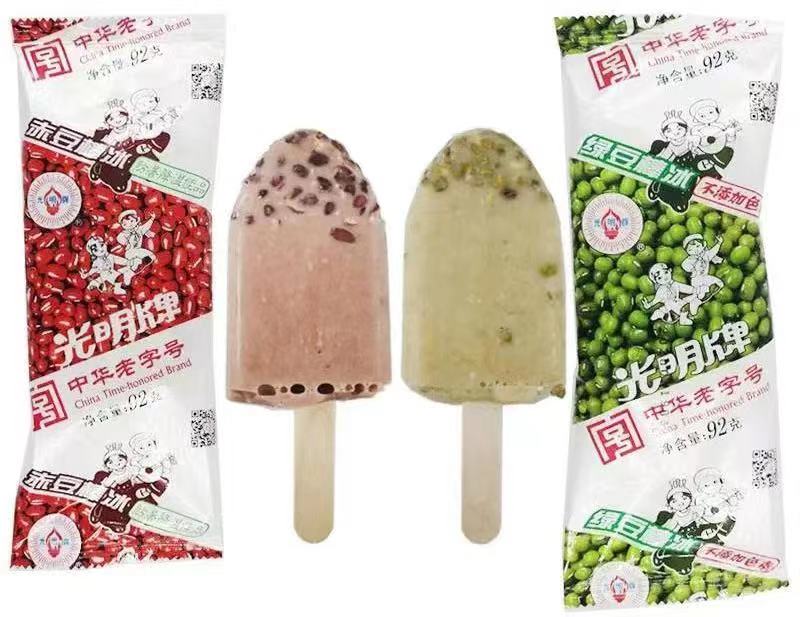 时至今日,赤豆棒冰和绿豆棒冰依然延续着大家记忆里的味道,一口咬下扎实的红豆/绿豆馅儿,就像自家姆妈做的一样!