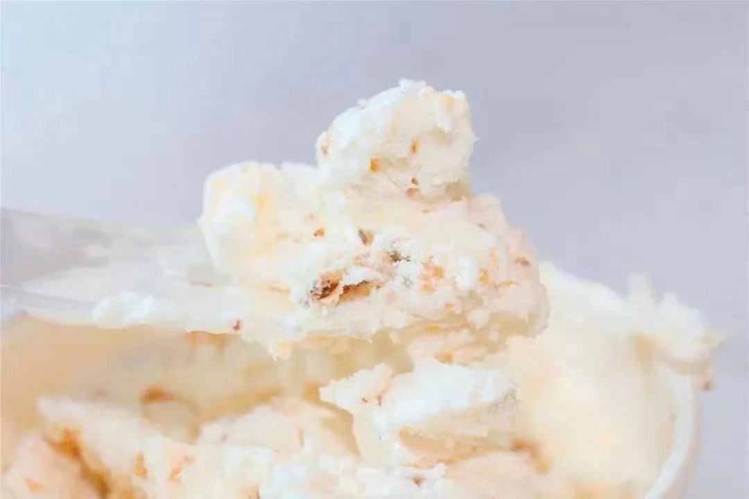 金辰老上海冰糕将鲜奶、淡奶油、焦糖与杏仁果粒进行完美融合,所有工序采用纯手工制作,不加一滴水,口感浓郁、绵密柔和、奶香扑鼻、回味甘甜。细细的杏仁果粒,与牙齿碰撞,入口后唇齿留香,让人沉浸其中,欲罢不能。从冰箱内取出冰糕后放置5-10分钟再食用,口感更佳。