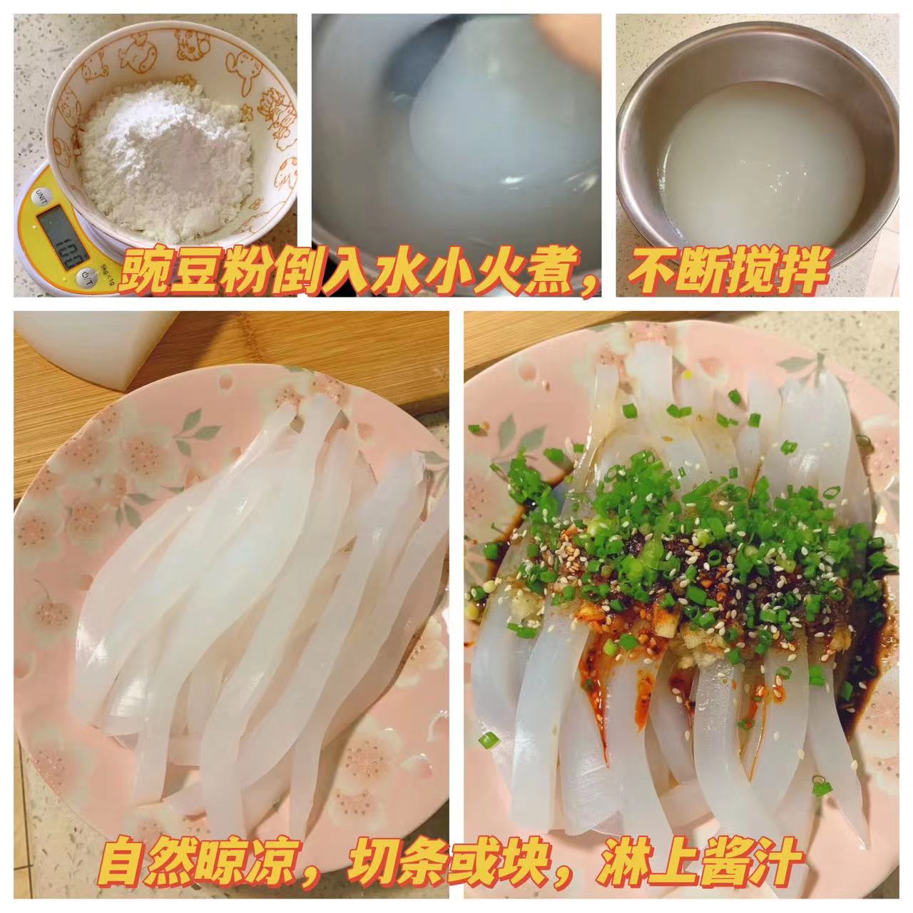 1.豌豆粉中先加入等量清水,搅拌成豌豆粉浆;