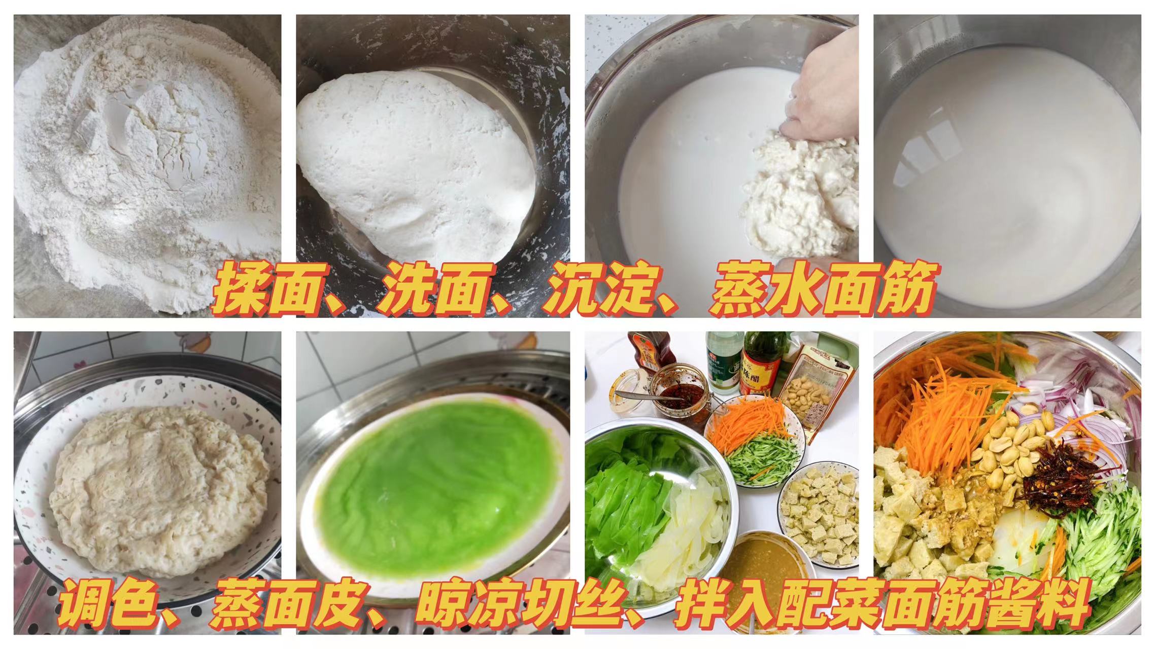 凉皮是陕西名小吃,做法要稍微复杂一些,据说真正正宗的秦镇凉皮,需具备筋、薄、细、穰、光、香、辣、爽等八个特点。嫌麻烦的朋友可以直接买成品凉皮回来拌着吃。