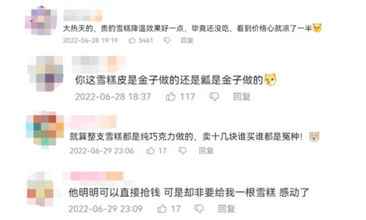 “平平无奇的外表,令人心梗的价格”,“这种雪糕最解暑,还没拆开已经心凉”……