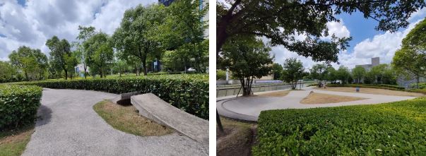 除了滑板,轻松漫游在公园里,开放式草坪、敞亮的亲水空间也是值得驻足的好去处,绝对让你心旷神怡。