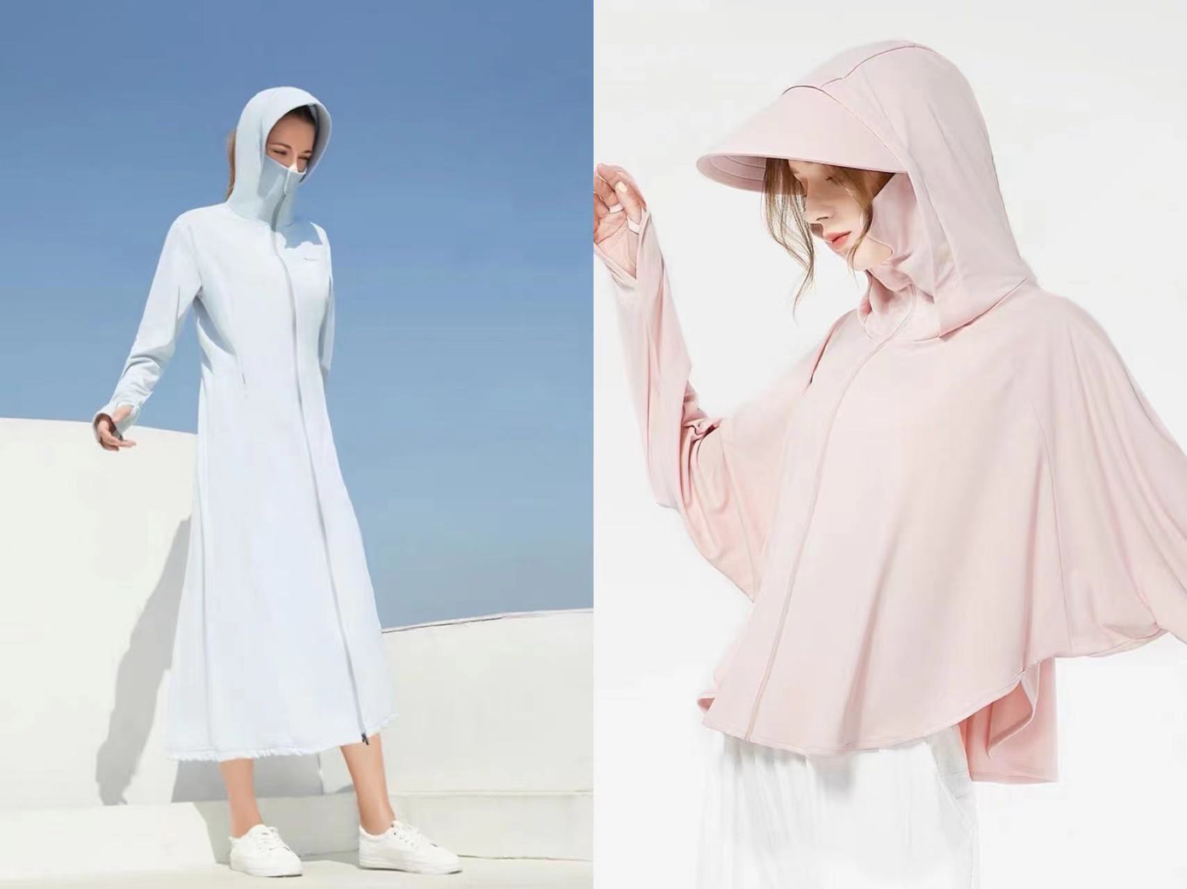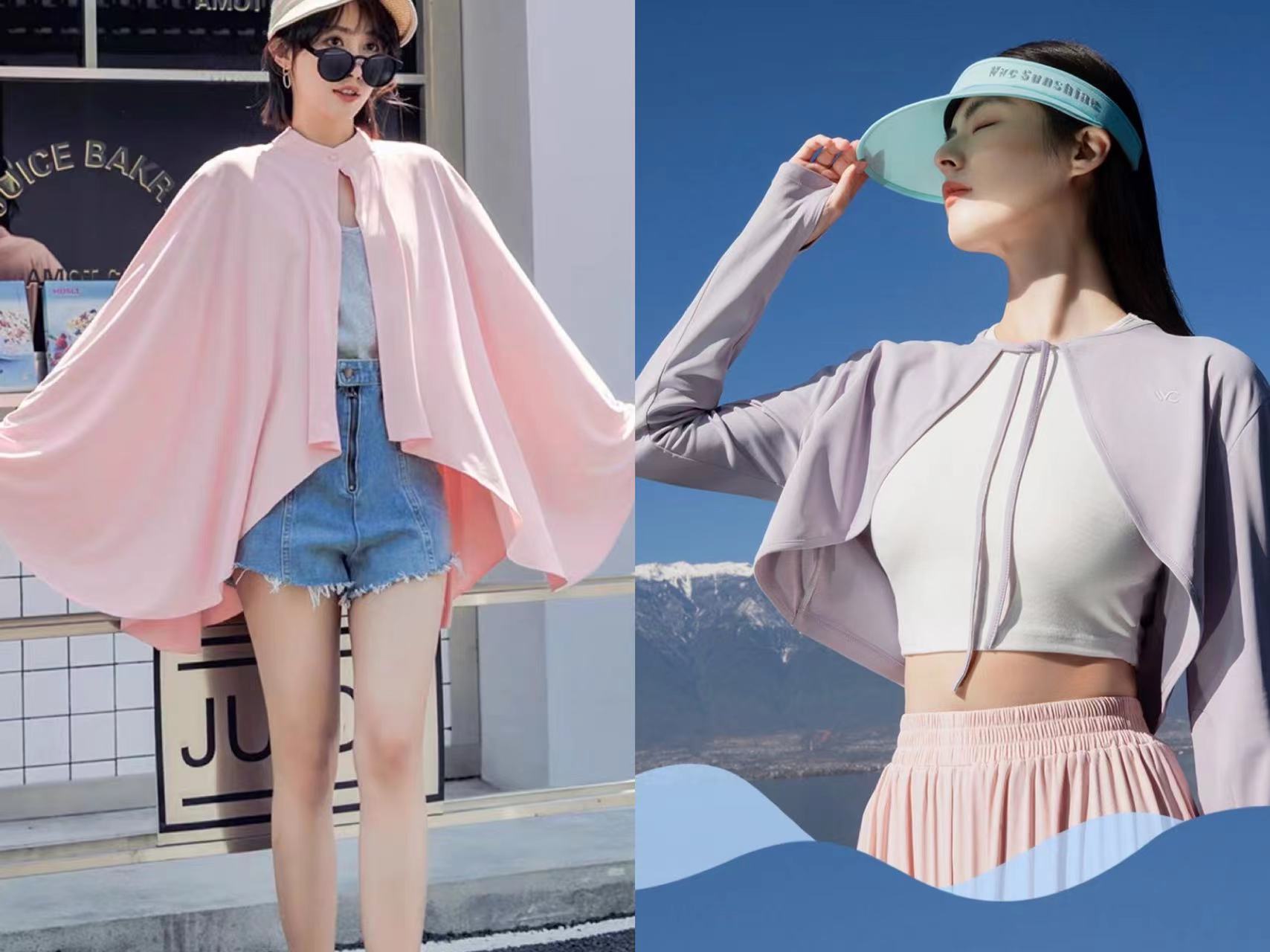 如果觉得防晒衣太厚实又不够美观,那更轻薄的防晒披肩和冰袖显然更受年轻人的青睐。