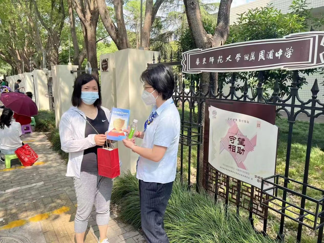 高考首日8时许,一支由20名青年员工组成的建行上海静安支行高考志愿者团队第一站来到市西中学考点,为早早抵达考点的考生、家长以及现场工作的警察等送上瓶装水、雨伞、湿巾等物品,同时还将印有“劳动者港湾”和 “建行生活”的扇子分发给有需要的人,让大家在炎炎夏日获得一丝清凉。