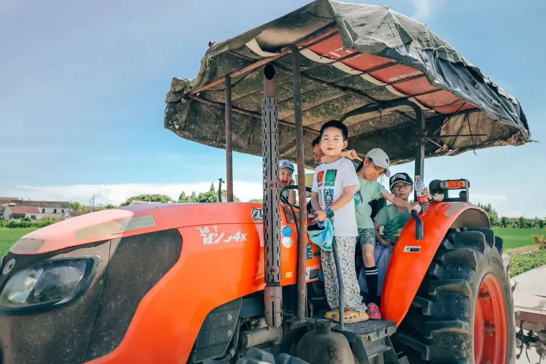 沈涛的一日行乡村独立营,就是让孩子感受乡村,在乡间走一走是必不可少的。结束博物馆的半天参观互动活动,孩子们跟着“营长”兴高采烈地先五宅村青春里养老社区附近的民宿出发,路上要经过水稻田、树林、小河,一路走走停停,孩子们在自然微风轻拂下感受乡村。不仅如此,沈涛还和村里商量,请农机手开来了拖拉机,孩子们果然很感兴趣,争先恐后要上拖拉机瞧一瞧,摸一摸。
