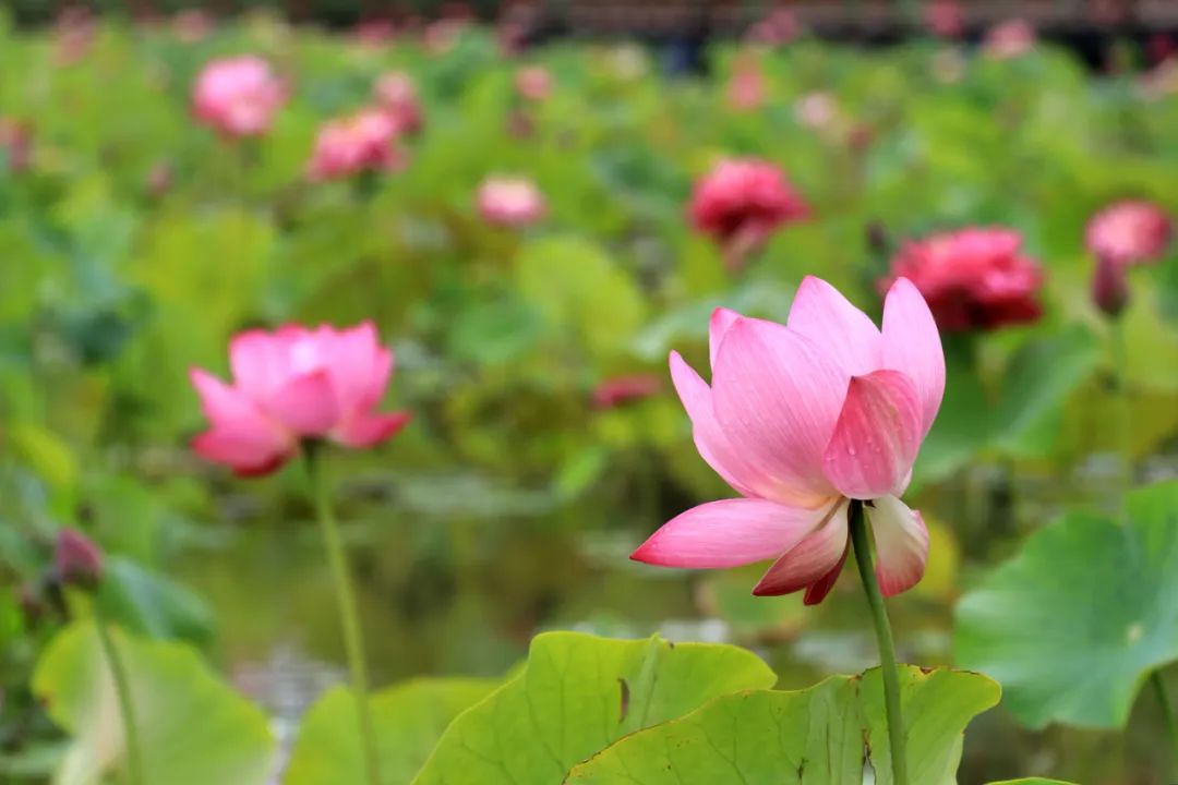 “夫赏花有地有时”,赏花不只是春天的事情,夏日微风和煦、繁花夹道,漫步林中,处处都能感受到新风景。初夏时节,荷花、绣球、马鞭草等花儿竞相绽放,把公园内的每个角落渲染得明艳动人,为夏日添上了一抹靓丽的色彩。