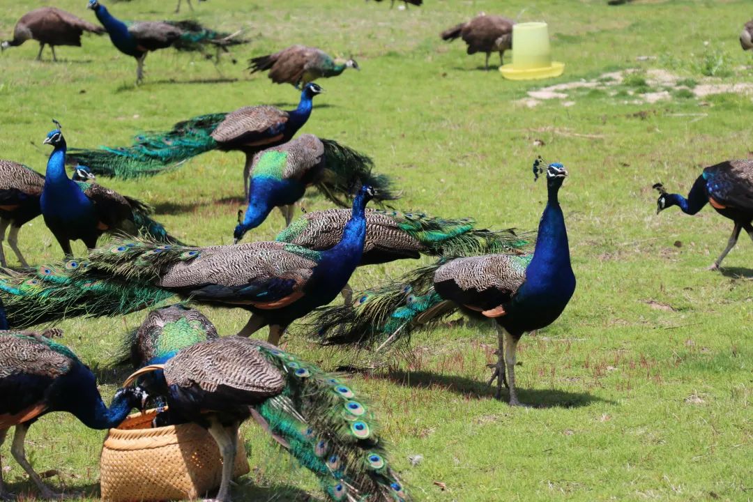 汉乐府的“孔雀东南飞,五里一徘徊”是怎样的缠绵悱恻?每天上午10:30、下午14:00,一天两场的孔雀放飞表演在孔雀园湖畔准时开始,哨声一响,上百只孔雀从湖对岸飞出,在草坪上争相嬉戏。在这里你可以近距离观察,更可以进行喂食、互动拍照等不同形式的亲密接触,体验人与自然的和谐共处。