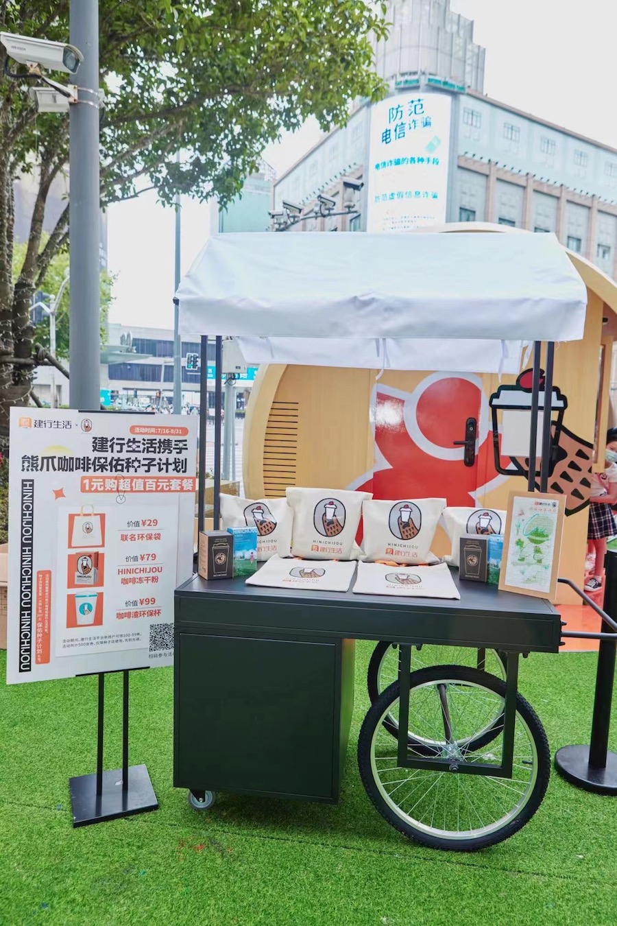 种子店的新任店长是“保佑”兄弟,哥俩在出生时由于早产缺氧导致双目失明。但年轻的两兄弟乐观开朗,不甘于“盲人按摩师”一条职业道路,哥哥天保努力学习,成为了一名专业咖啡师,弟弟天佑紧随哥哥之后,成为种子店二号员工。为了给新上任的店长更多的支持,“建行生活”APP推出熊爪咖啡联合公益活动——“保佑种子计划”,消费者可以1元爱心价获得熊爪咖啡联名冻干粉、咖啡渣环保杯、环保袋礼包。同时,消费者还可以通过“建行生活”APP领取熊爪咖啡20-15的立减券,使用范围覆盖全上海的6家门店。