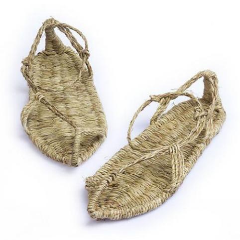 除了木拖鞋,古人还有草拖鞋。古时称草鞋为“芒履”、也叫“不借”“千里马”,讲的是草鞋虽然简陋,人们不会互相借来借去的,而且质地柔韧耐用,可以穿它不远千里地赶路。