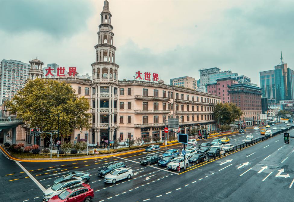 站在西藏南路延安东路天桥上,你可以用几乎平视的视角来欣赏大世界的建筑。