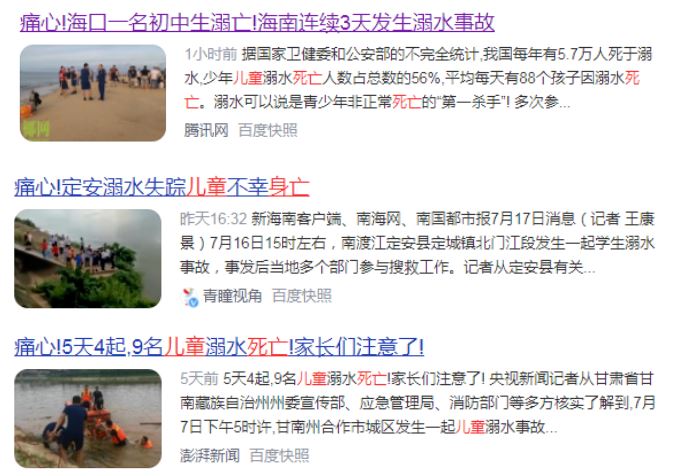 但是,人们享受清凉的同时,溺水危险也在“虎视眈眈”。暑假过半,全国各地已连续发生多起儿童溺水身亡事件,令人痛心不已。