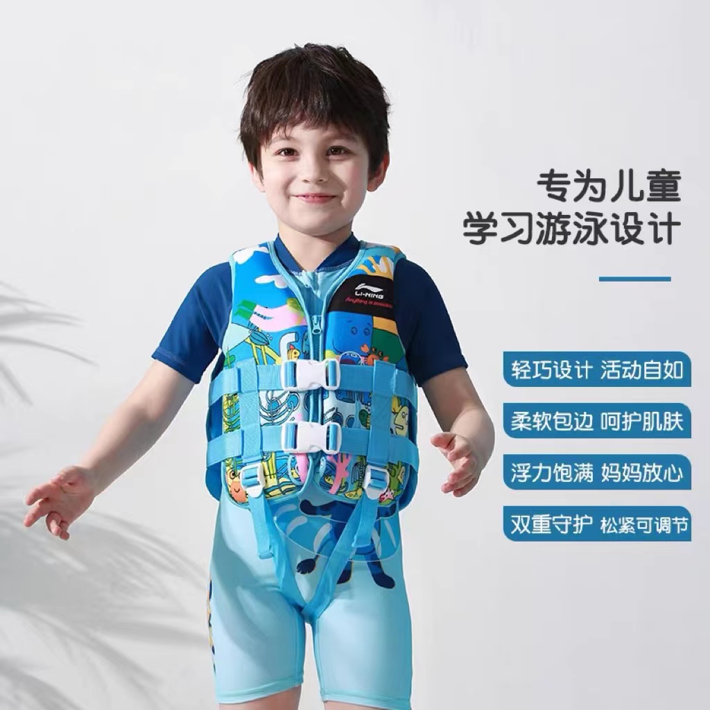 救生衣分有领子的、马甲式的以及将漂浮物填充在游泳衣内的介于游泳衣和救生衣之间的几种,黄女士觉得孩子还是马甲式的最方便实用,选不带袖子的,孩子练习吐泡泡可以轻易下水。