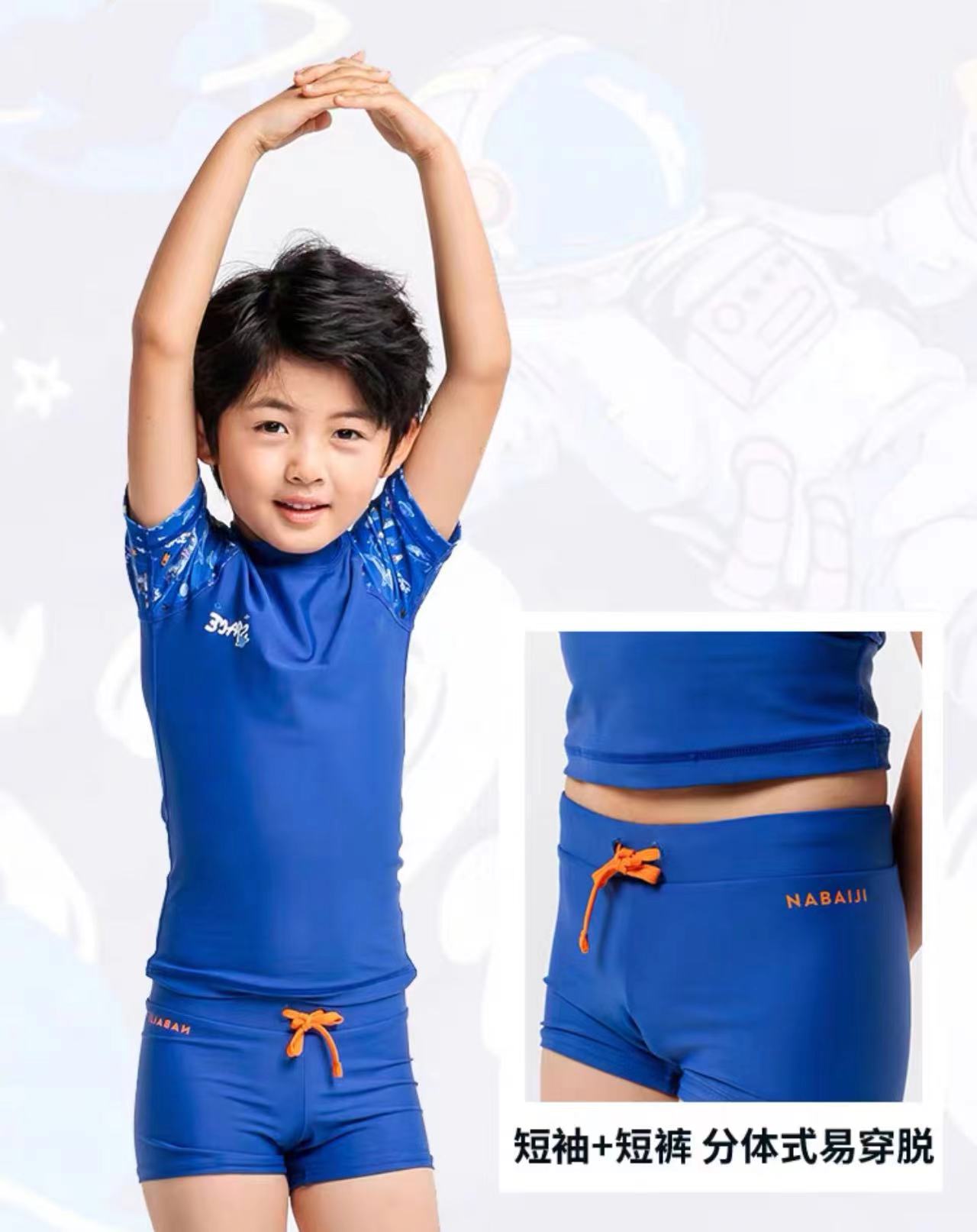 店员建议:“选购游泳衣时,应试着进行多次拉伸,如果游泳衣仍回到原样,说明回弹复原性好。色彩方面尽量选择鲜艳些的,方便父母注意孩子。因为孩子还小,尿急什么的控制得还不是太好,选分体式游泳衣,穿脱容易,更方便。”