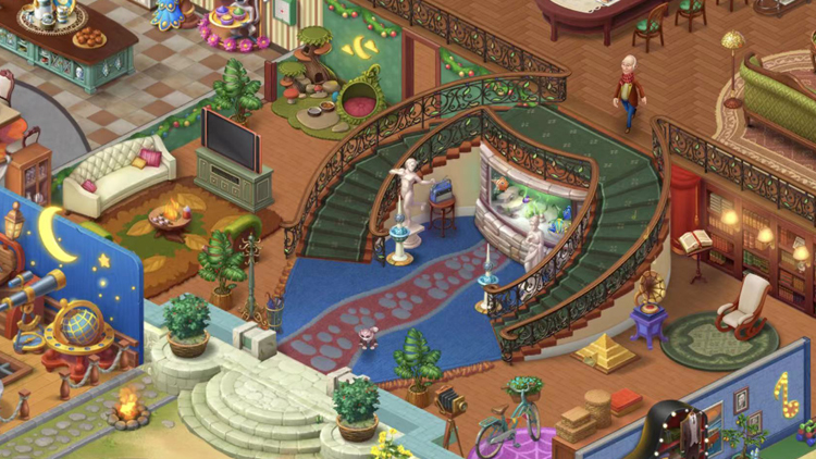 与传统消消乐采用单一设计图案不同的是,《梦幻家园》紧扣房屋装修的主题,将家具卡通化,为需要消除的图案附加了一层新意的同时,增添了一层内在含义。在背景音乐、音效的配合下,图案被逐一消除,带来难以言说的愉悦感,炸弹、飞机等道具的设计,更是通过一瞬间消除大量图案而加深了这种愉悦感,让人在游戏的过程中,能够通过这种形式缓解压力。而翻新房屋、搭配家具的过程,同时伴随着奥斯汀对于童年的回忆,有那么一刻,仿佛把玩家也带回了那一段纯真时代,看着奥斯汀的故事,也仿佛看着自己,《梦幻家园》带来的治愈感在这一过程中越来越强。