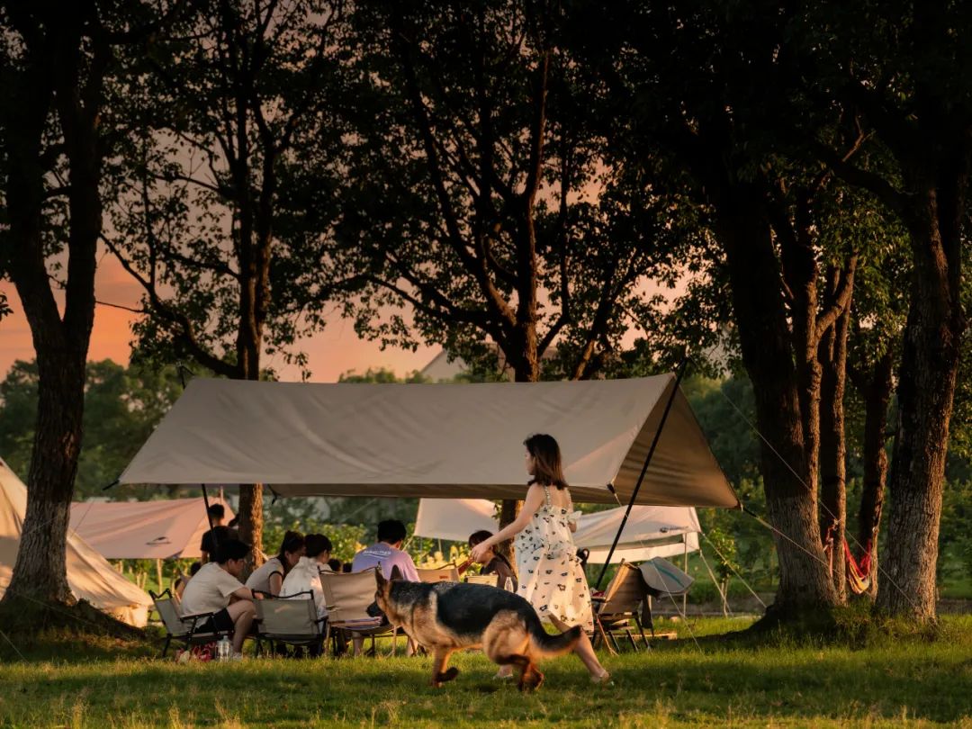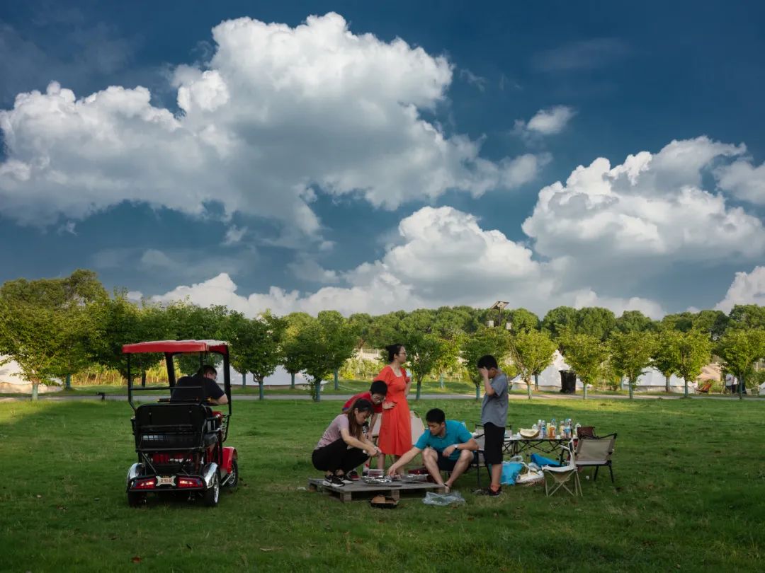 在林荫间安营扎寨,在阳光下围炉欢歌,从凉椅上仰望天空,丈量云朵飘移的距离,用两天时间爱上金山的夏日。