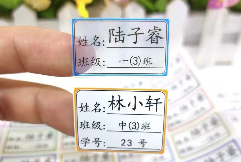 准备若干姓名贴,贴在水杯、书本、文具等物品上,方便孩子快速找到自己的物品,不容易丢失。