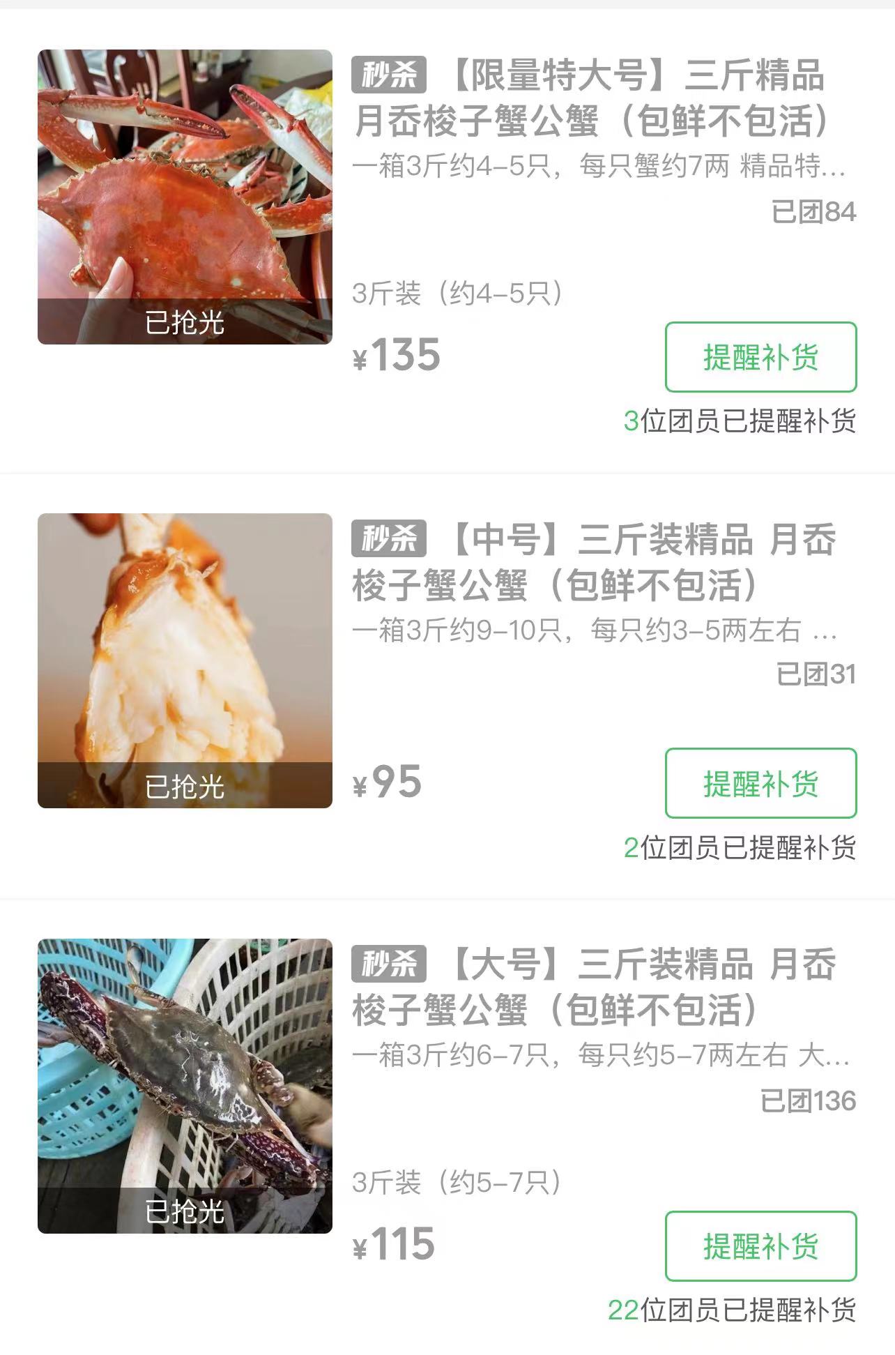 此外,在“快团团”上,“包鲜不包活”的梭子蟹也颇受市民欢迎,按个头和品质,每斤价格在35-45元,是这两日的秒杀爆品,想尝鲜的市民可以留意一下。
