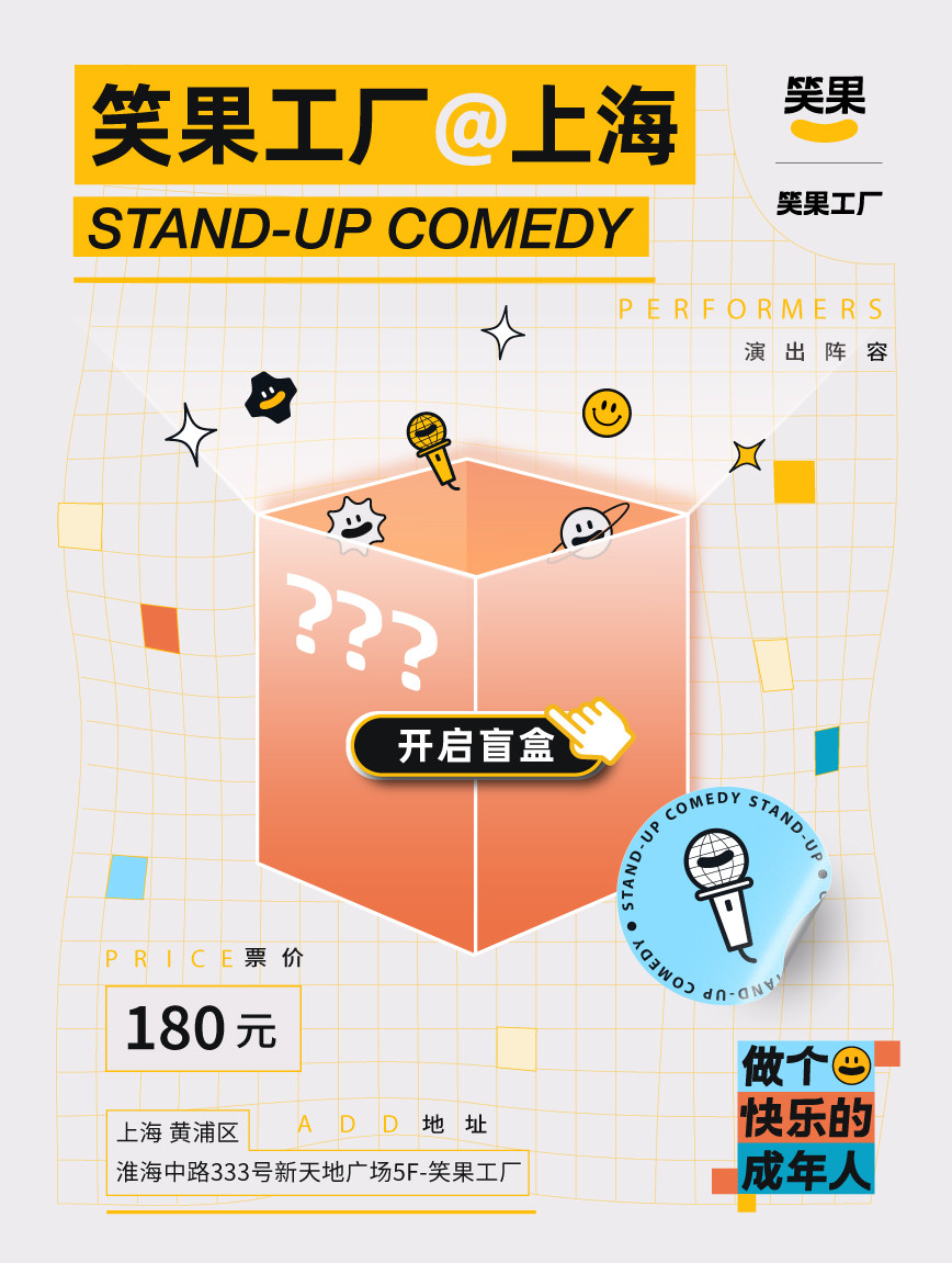 演出地点:上海笑果工厂FUNFACTORY-新天地店 淮海中路333号新天地广场五楼507