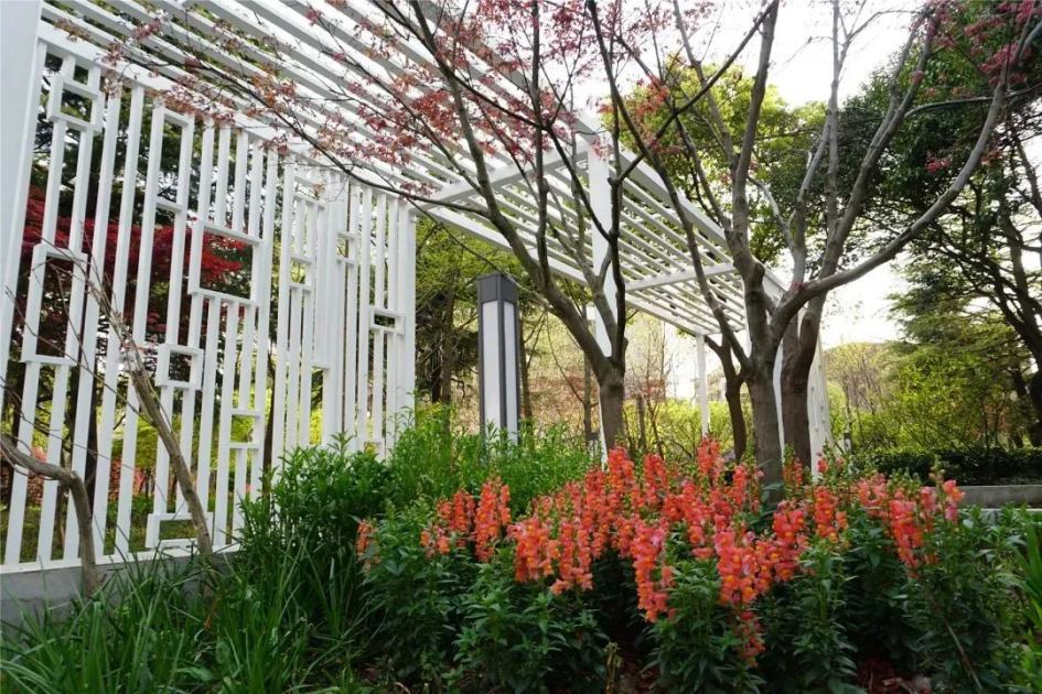 光音花园以自然清新、精致简约的庭院风格为特点,打造绿色生态、时尚与历史相融、文化底蕴深厚的公共花园,营造草木丰茂、“有声有色”的游园体验。