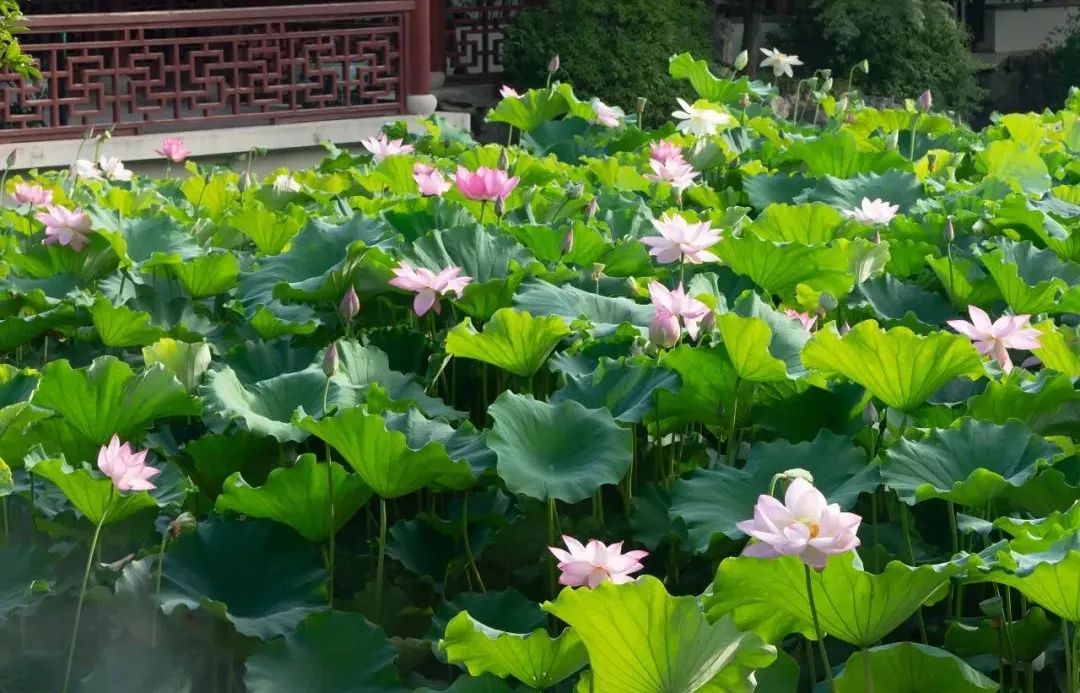 经过了园艺工程师们的精心培育,古猗园内的荷花家族不断壮大。如今,荷花花期已进入了观赏“尾声”,你发现了这些新奇品种吗?