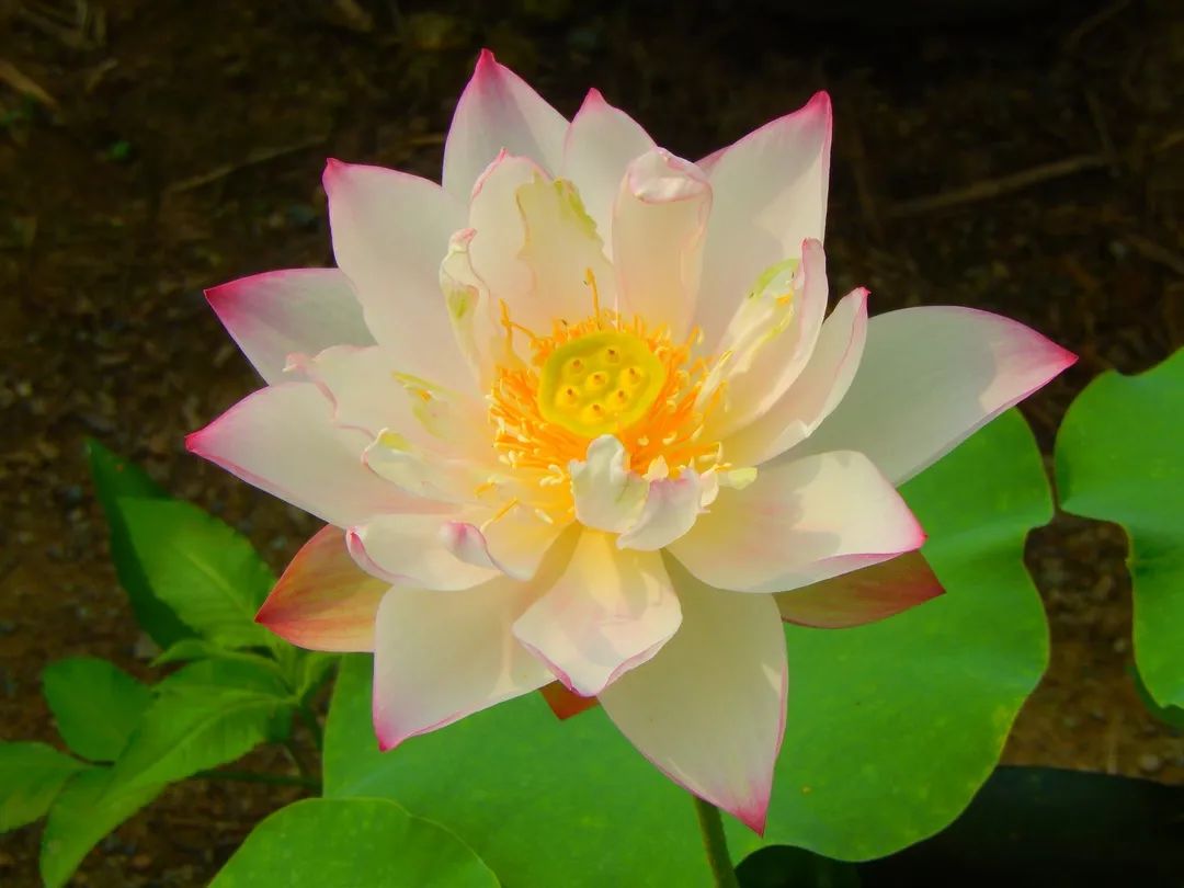 该品种为中株型的复色单瓣品种,花态碗状,花瓣尖深粉红色,内部黄白色,花心处的花瓣呈现黄绿色瓣尖,花色独特。