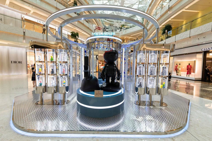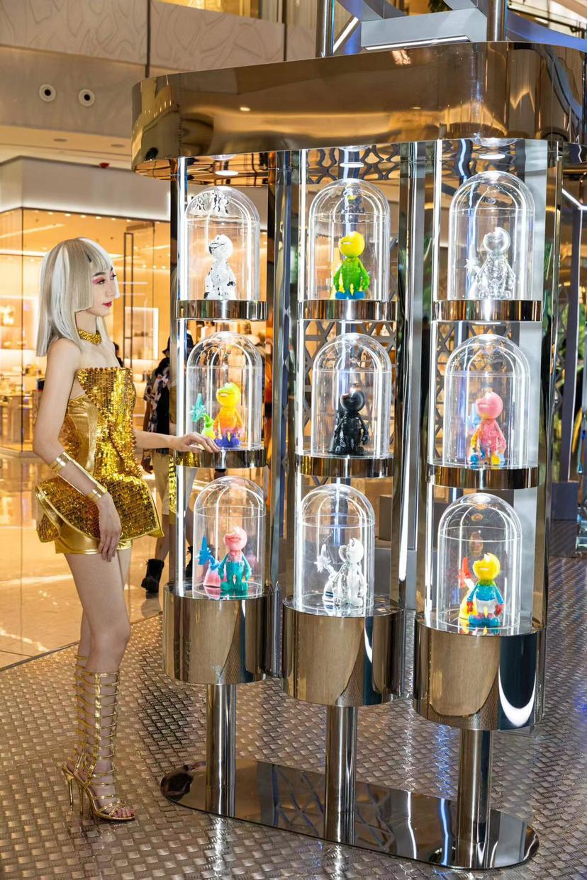 此次展览分为三大主题展区,其中在商场中庭打造一座绚丽夺目的元宇宙星球,走入其中感受光影变化,无限延伸未来空间的时空倾覆之感。艺术家欧阳儒展出多件大型雕塑、不同风格的手绘雕塑及NFT艺术作品,以独特的艺术风格和形式,将展览空间打造成专属次元。让顾客在感知艺术与空间的过程中,彷佛置身于虚拟多元宇宙, 体验另一艺术的“新次元”。此次展览中还特别增设了360度未来科幻镜面世界,通过镜面的折射变幻出璀璨的时空碎片,顾客除了欣赏先锋潮流艺术作品外,还可留下超未来感写真大片,感受穿越时空的的多元艺术夏日。