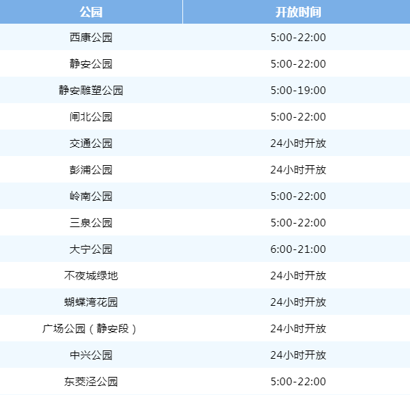 静安各大公园调整开放时间↓↓↓
