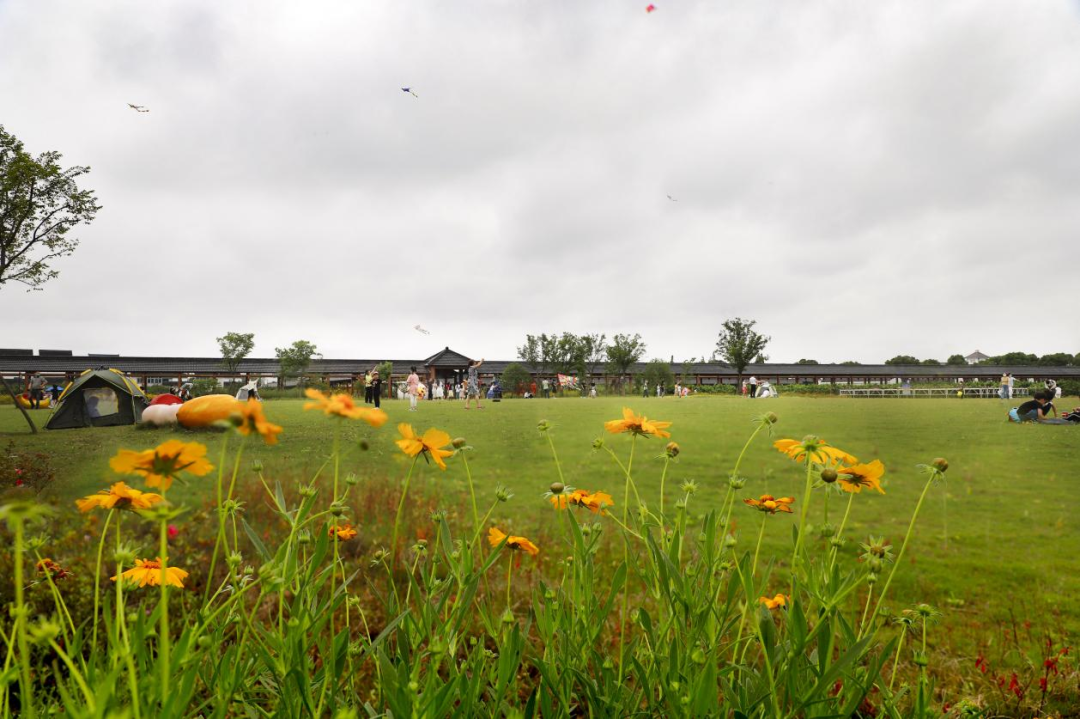 在吕巷水果公园的草坪上,