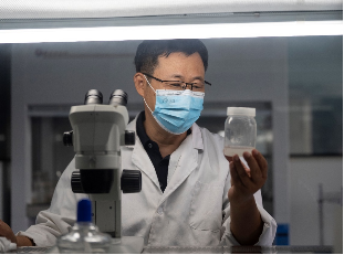 ▲ 烟薯25号育成人辛国胜正在进行茎尖剥离实验。脱毒种苗进行繁育后会供应给农户种植。小满|摄