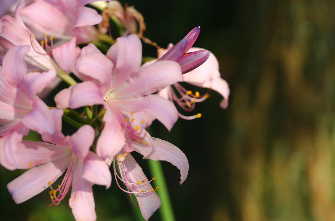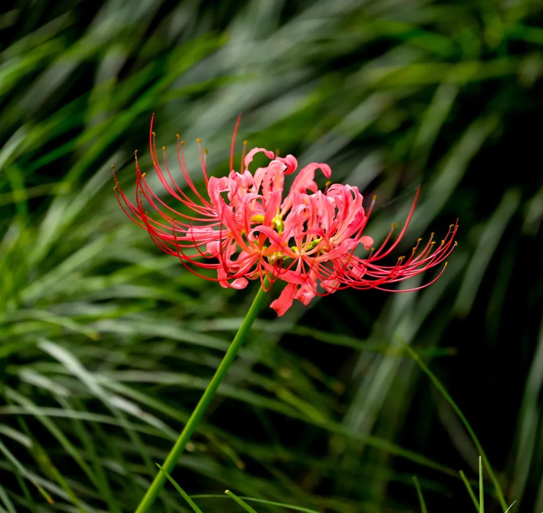 换锦花与彼岸花同为石蒜科石蒜属,每当春暖花开的时候,沉睡在地下的鳞茎便会苏醒,慢慢抽生出嫩绿的叶片。叶片直到炎热的夏季到来,才开始进入休眠。叶片蓄积的养分传送给地下的鳞茎,为花芽分化提供了能量。