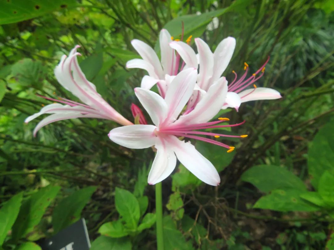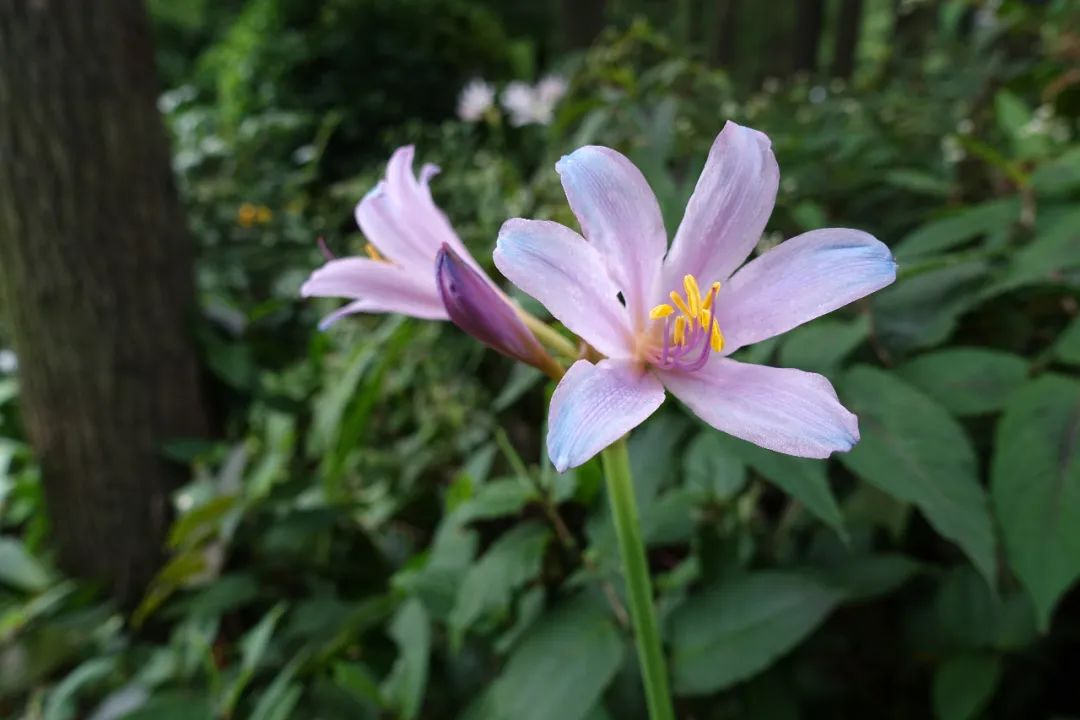 每年8-9月,在某个雨后的清晨,换锦花会抽生花葶,翠绿的的花茎如玉剑般破土而出,短短数日便能长至半米高,然后惊艳绽放。