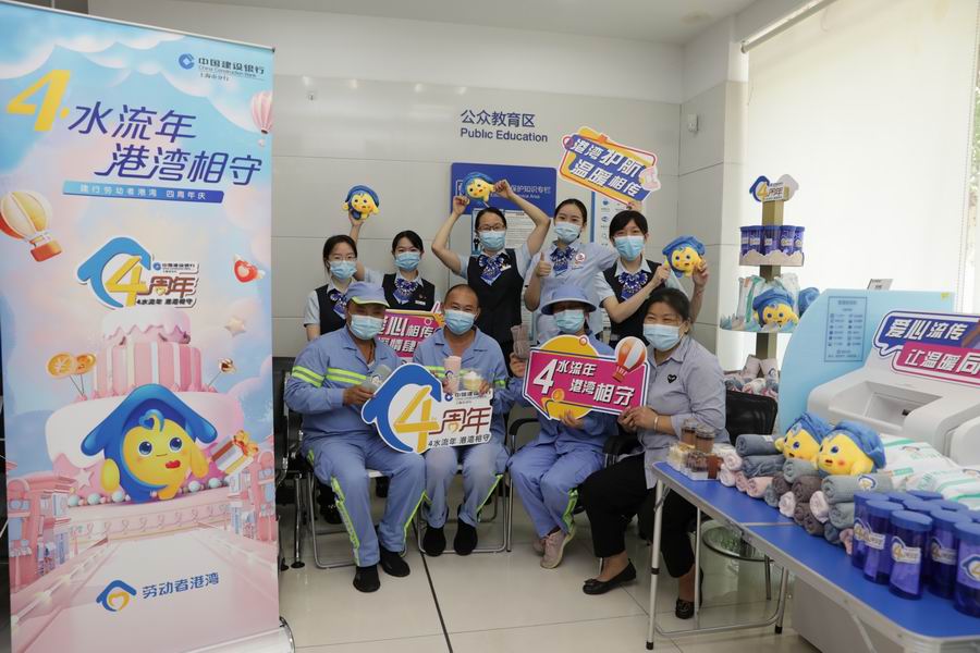 建行黄河路支行邀请网点周边环卫工人一同为港湾4周年庆生