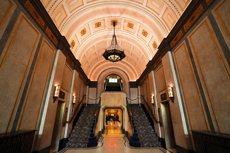 大光明电影院也是邬达克的代表性建筑作品之一,为典型的现代装饰艺术风格,该建筑拥有米黄色的外墙和银灰色的围栏,朴素典雅、线条流畅。大厅同样选用淡米色的石材,简洁清爽,多了点现代气息。