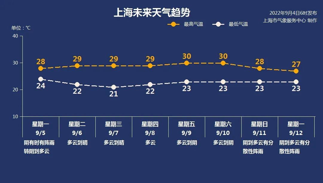 本周二(6日)起随着台风远离,艳阳天将重返申城,气温没有明显变化,最高29-30℃,最低21-23℃,工作日以多云为主,周日(11日)前后会有一次降水过程。天气不凉,也不算热,舒适的夏末模式继续。