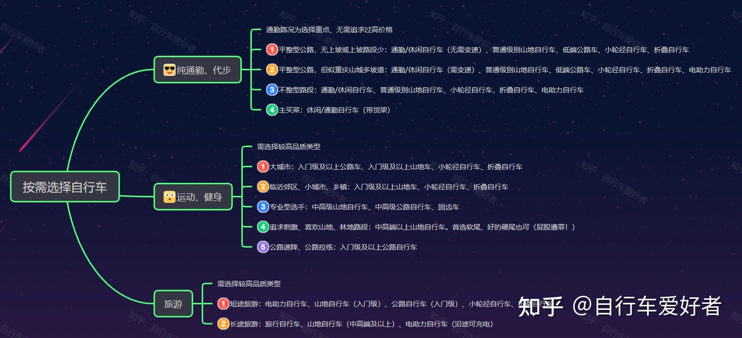 自行车的细分市场逐渐清晰,通勤自行车、休闲自行车、山地自行车、公路自行车等类型开始逐步进入大众视野,可按需参考。