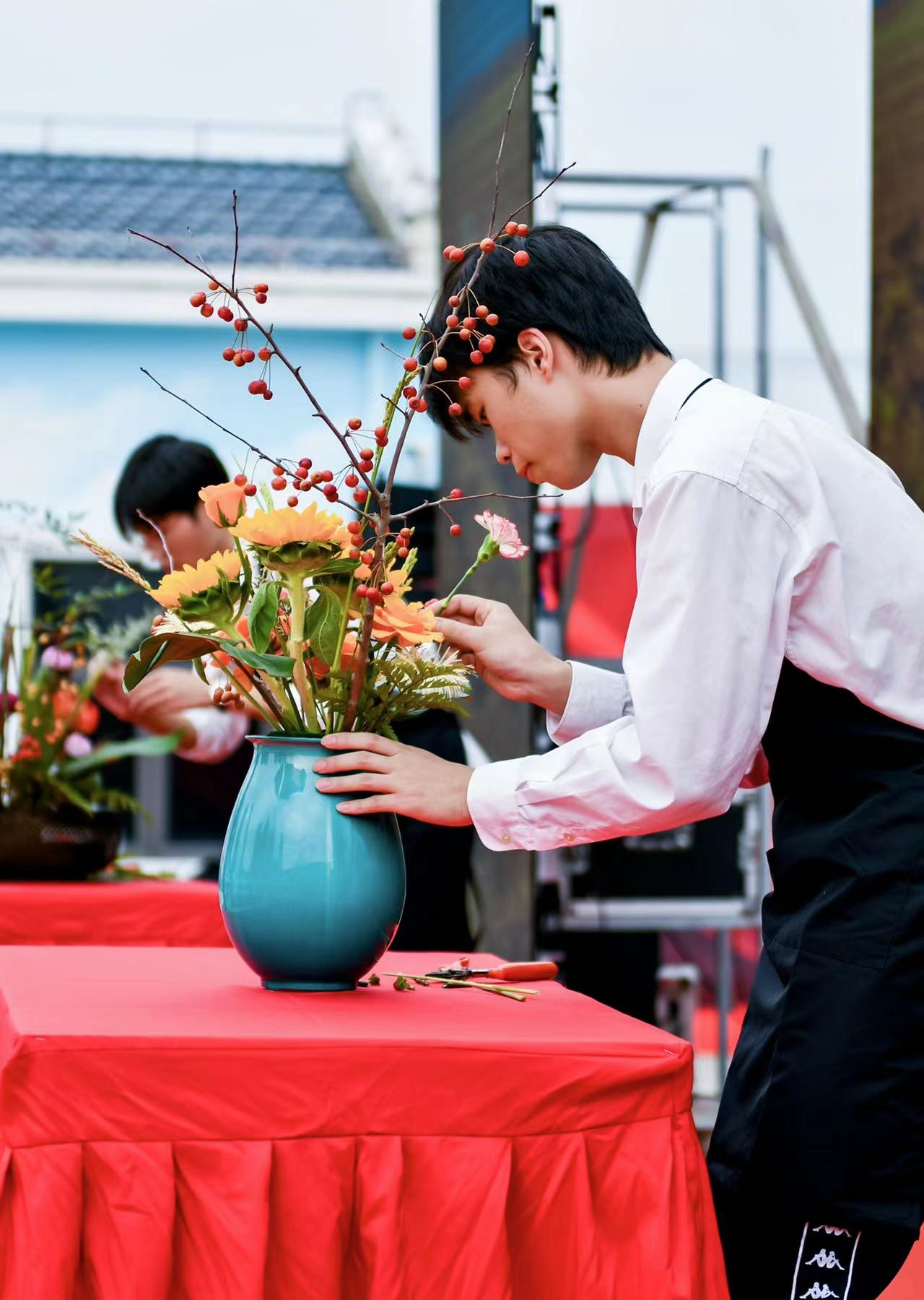 24面寓意着中国节气的中国鼓,装扮喜庆,伴着“禾下乘凉梦”插花演出和开镰仪式,松江迎来2022年中国农民丰收节庆祝仪式,喜迎党的二十大召开。舞台上,一场来自田间地头的“微党课”,把镜头和时间留给了松江创新创业农民、家庭农场主、驻村指导员。近两年,不同角色的家乡“带头人”主动选择来到松江乡村,乡村振兴的“大变化”在他们的亲身感悟中变得栩栩如生。以“建功新时代 稻梦新启航”为主题的启动仪式,在丰收稻田的舞台上徐徐“展开”。