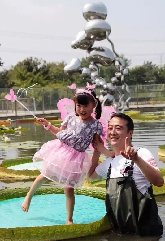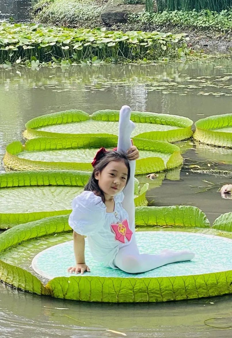 在辰山植物园的水生植物园区,生长着上海数量最多的王莲。自2011年起,辰山植物园每年都会举办“百变萌娃坐王莲”的活动,邀请适重的小朋友穿上心爱的衣服,在王莲巨大的叶片上留下珍贵的记忆。