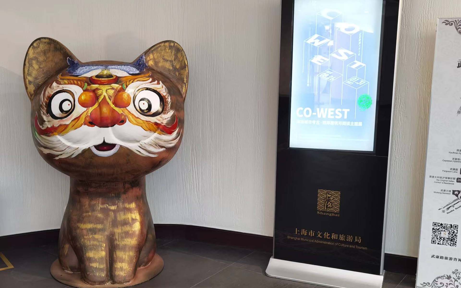 红色是这只猫猫的主题色,乔家栅体验中心内的这只复兴猫看上去非常乖巧可爱。
