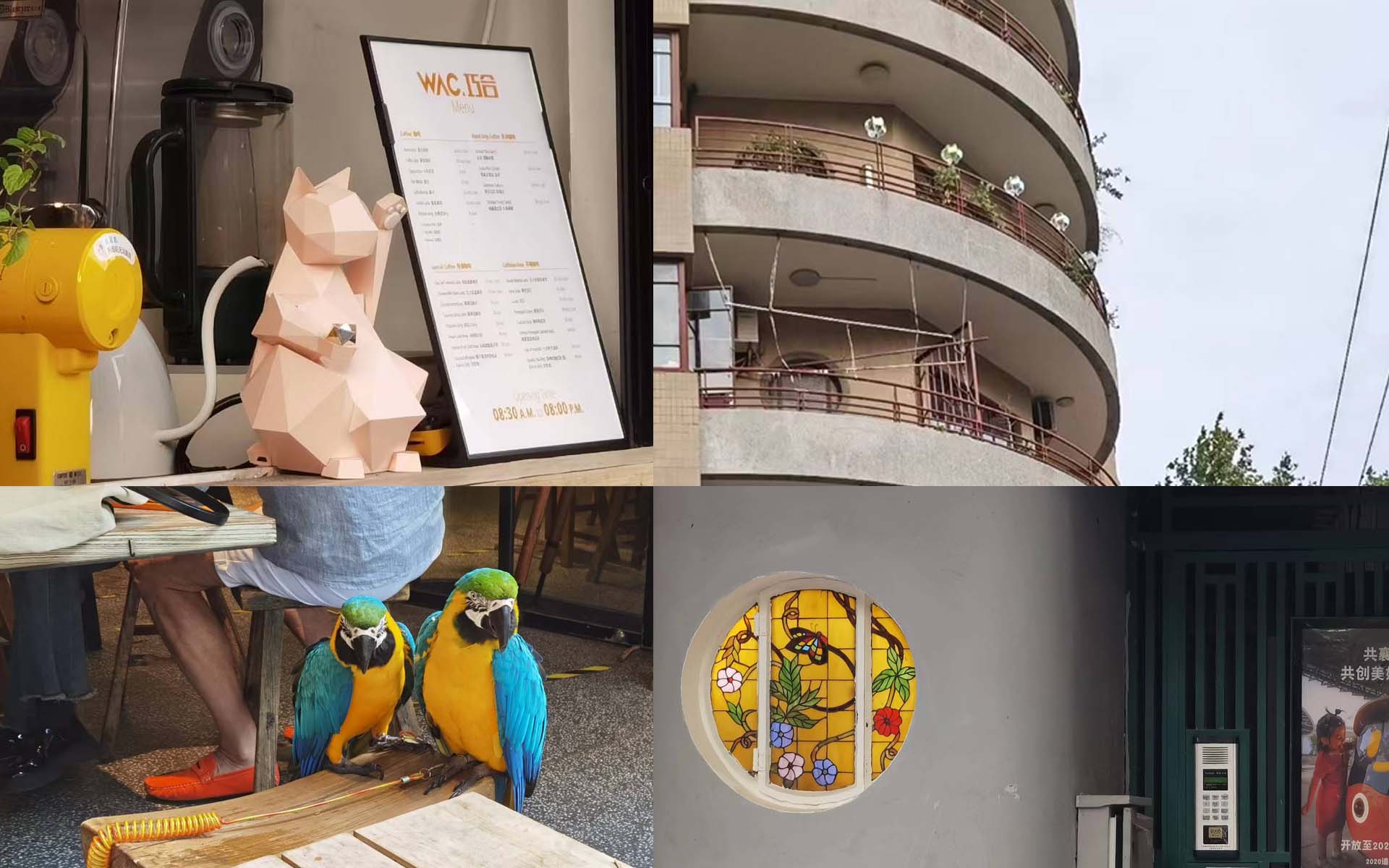 饮品店窗台上的猫猫摆件、住宅阳台上的一排风车、西餐店门口依偎在一起的鹦鹉又或是居民楼漂亮的玻璃花窗,这里不仅有复兴猫,还有更多的小美好等着你来发现。