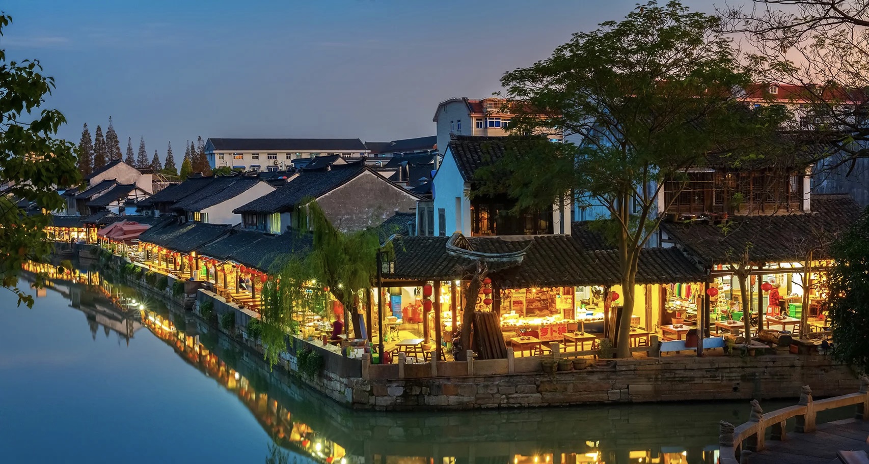 夜晚灯火阑珊,小船摇曳,波光粼粼,你也可以乘坐游船,慢享古镇的悠闲。