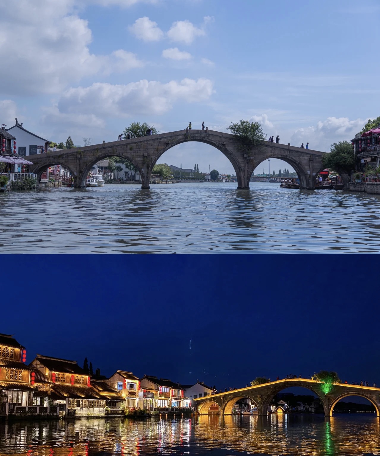 古镇朱家角的夜格外动人,放生桥头,灯火辉煌的小饭店充满了烟火气,可以与家人朋友一起享受这里的秋夜清风。