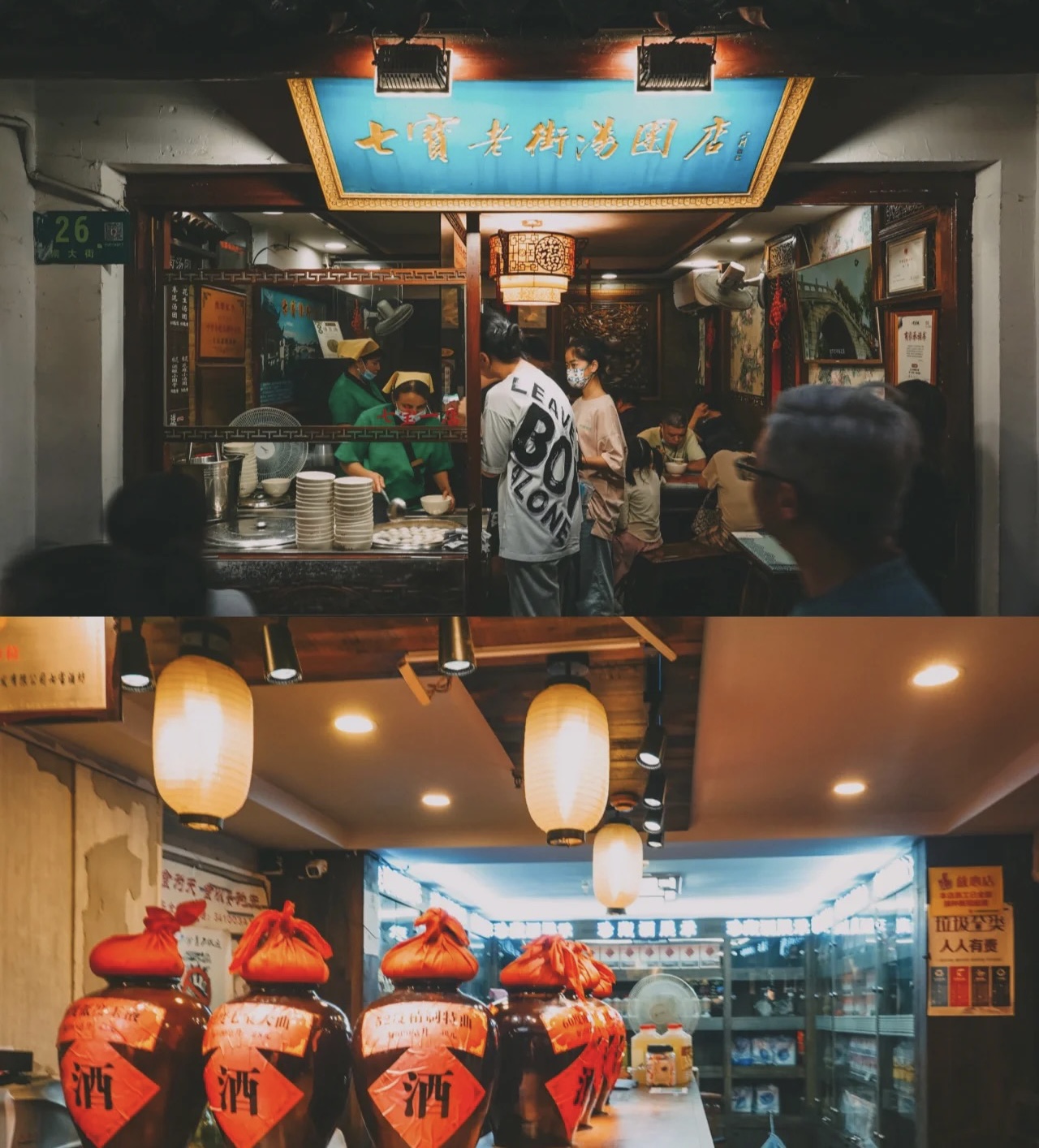 在这里,可以品尝老八样传统菜肴以及“新场青”“蜜露桃”“海棠糕”等特色美食。张记鸡汤桃胶豆花、东仓汤包店、一尺花园等也是吃货们必打卡的店。