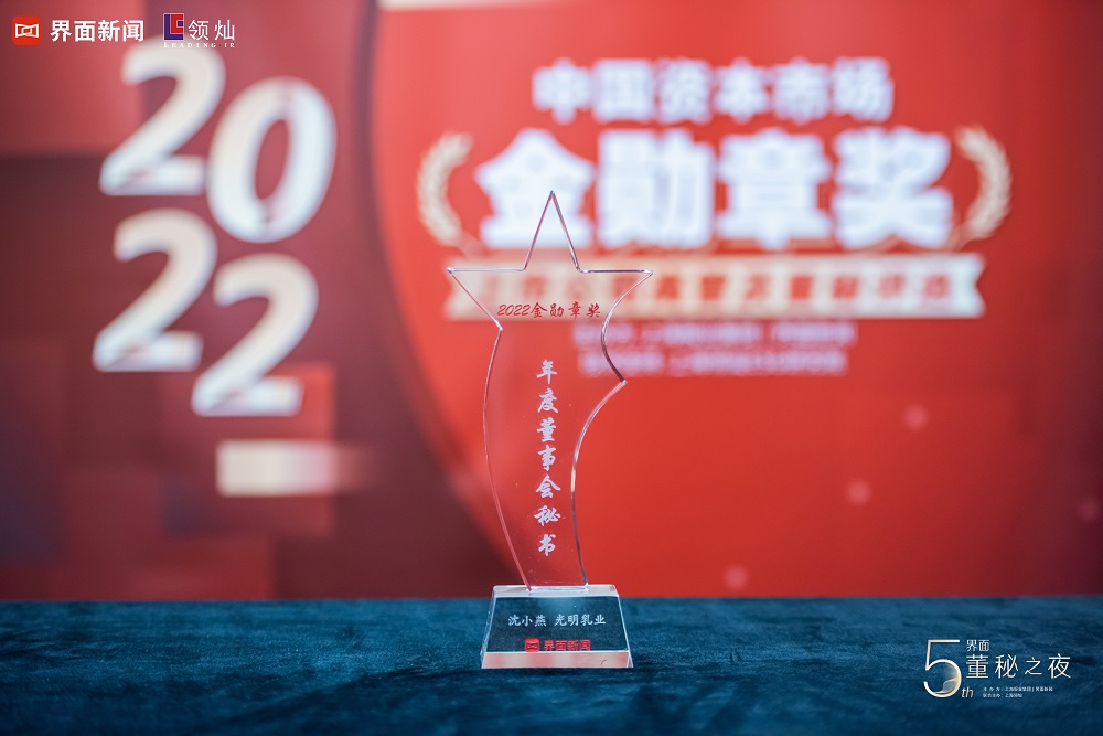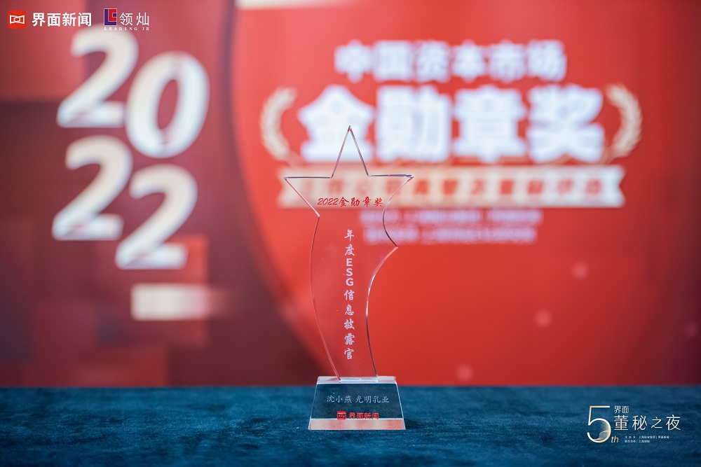 2022年9月8日,由上海报业集团|界面新闻主办的2022金勋章奖年度评选在昆明圆满落幕,现场揭晓了年度企业领袖、年度董事会秘书、年度ESG信息披露官和年度ESG实践案例四项大奖。光明乳业凭借其在企业治理、环境保护、社会责任等方面的优秀表现及实践,荣获了本次年度“ESG信息披露官”“ESG实践案例”以及“年度董事会秘书”三大奖项。