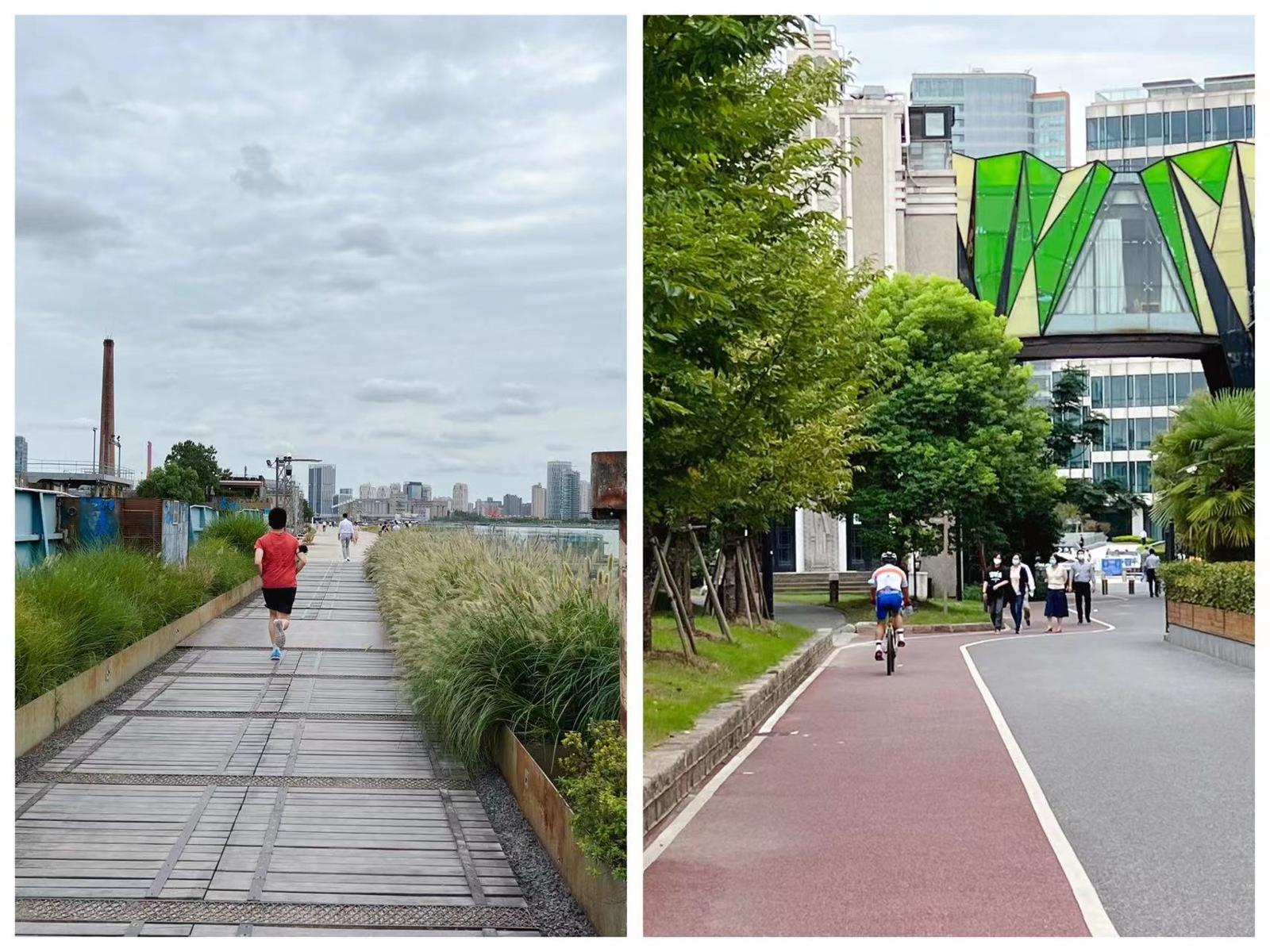 已为人母的小刘经常带着孩子到杨浦滨江骑行、散步、看日落,感受这座城市的更新变化。她介绍:如今这里水岸开阔,绿化优美,是时尚一族常晒的“网红打卡地”,运动达人慢跑、骑行的健身场,孩子们喜爱的“亲子乐园”。
