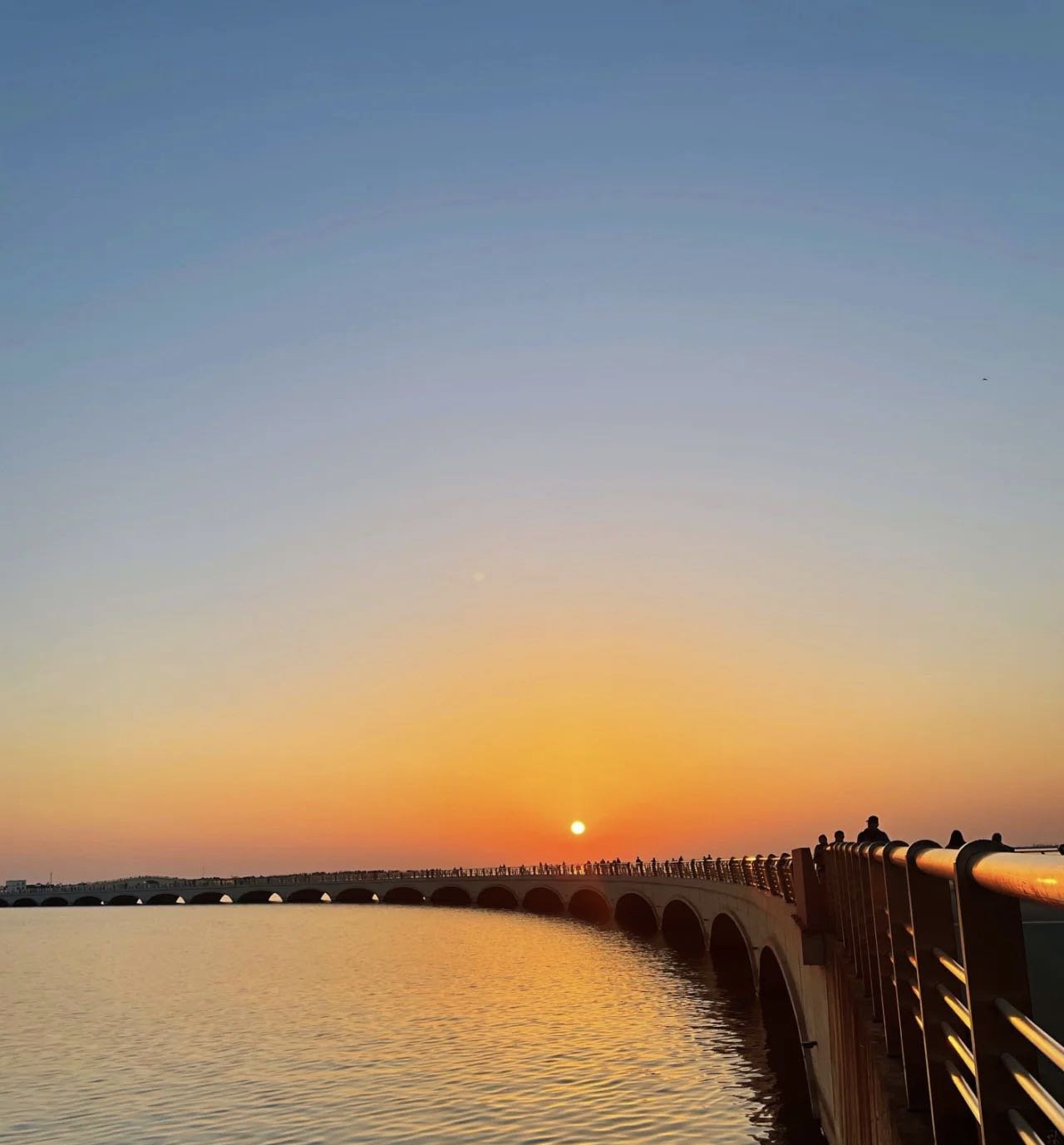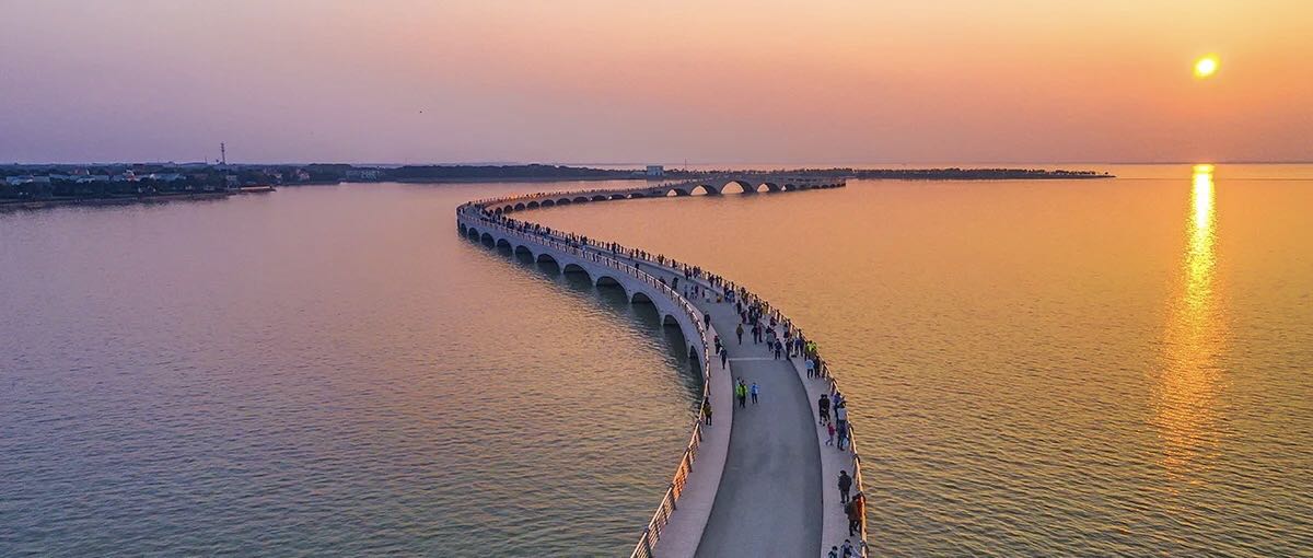 湖上彩虹桥长达1470 米,是长三角地区最长的拱桥,被评为沪上新八景“淀湖环秀“,这里是不错的看夕阳晚霞的好去处。